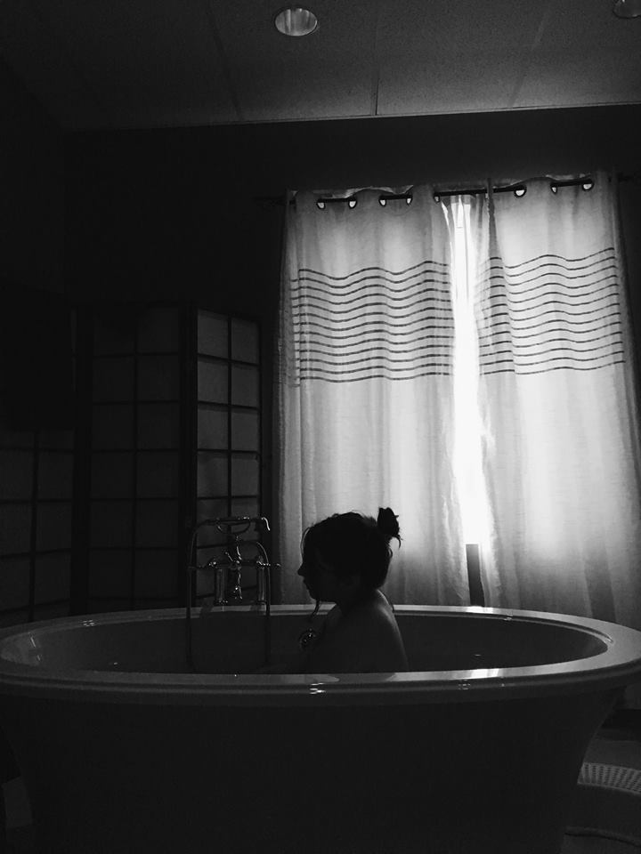 Je prends un bain, comme ma sage-femme m’a mentionné de le faire, voire si le travail continue. Les contractions sont déjà au 4 minutes, il est 9:00.
